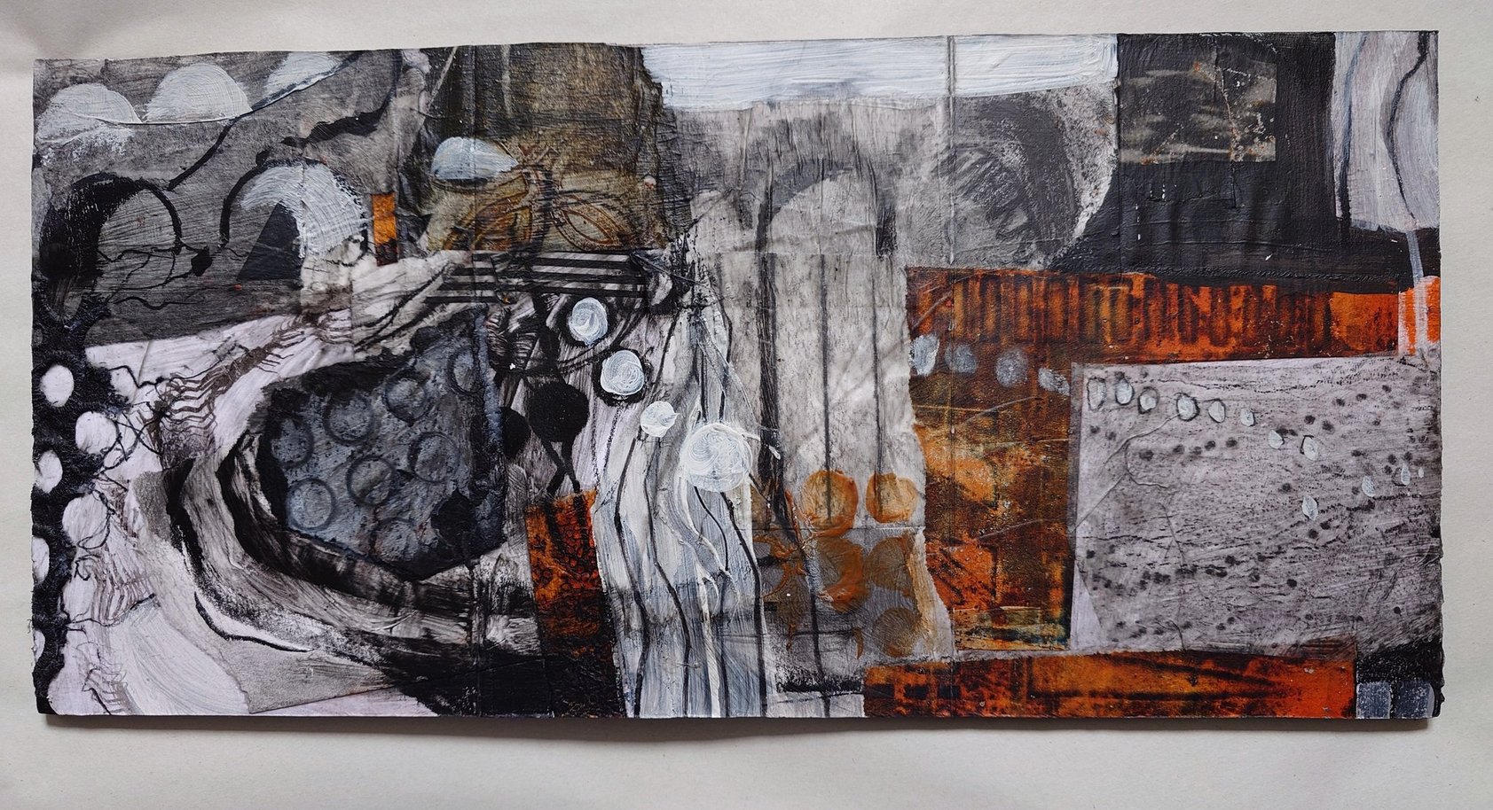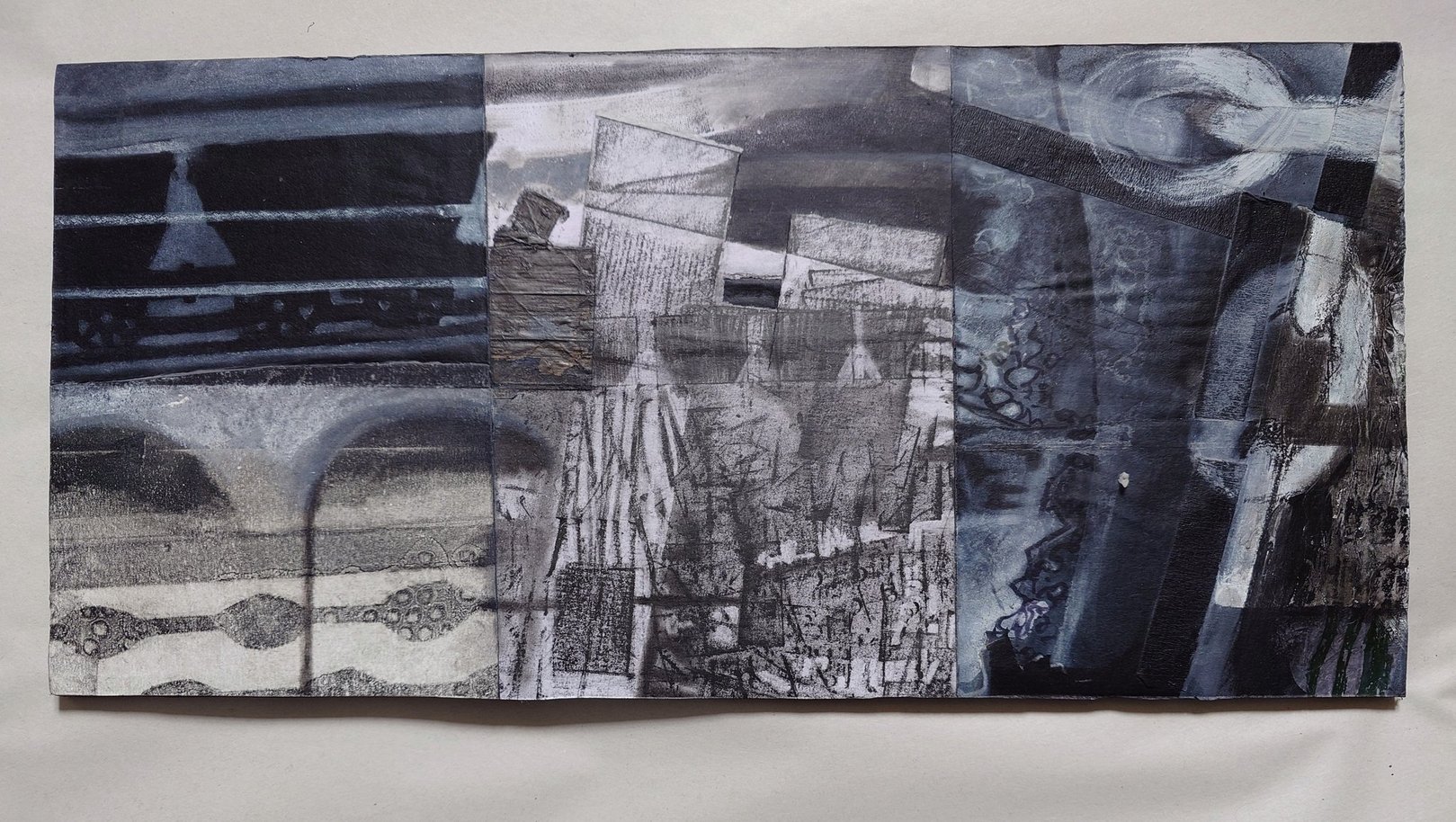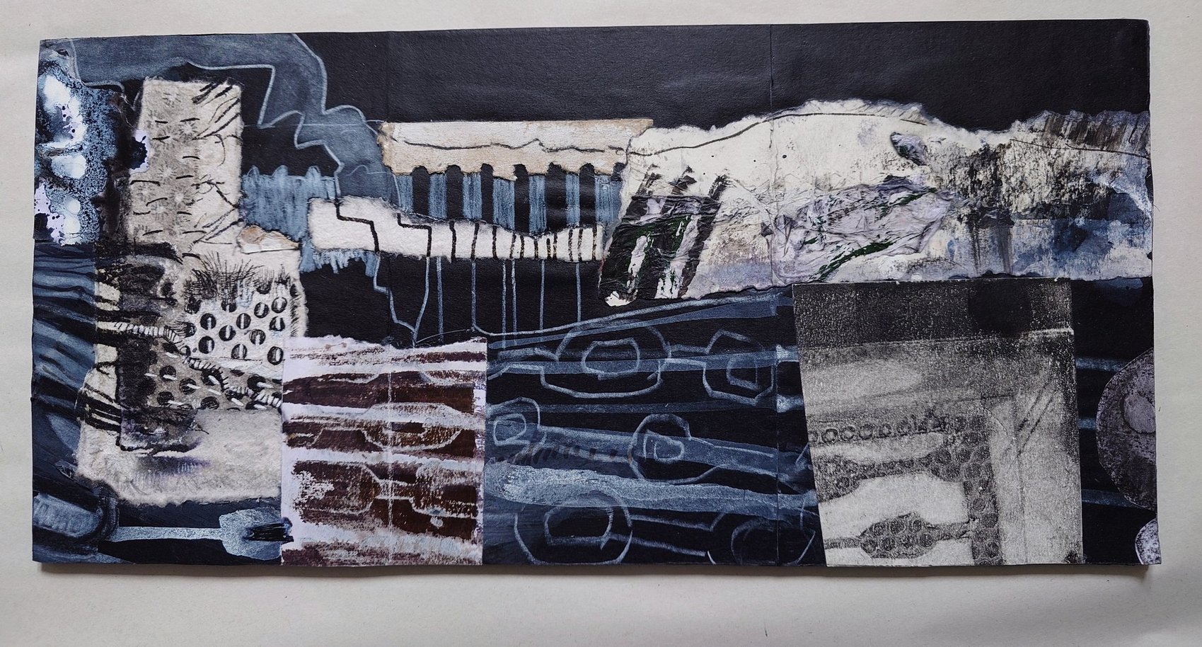 From my Broken Coast series. A mixed media collage on paper mounted on a plywood panel and presented in a plain black tray frame.